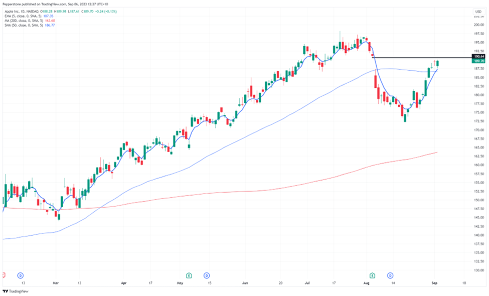 Apple – 展望下周,苹果的“Wonderlust”产品发布会计划于9月12日举行,届时将推出iPhone 15,我们看到股票价格正在向190.69美元缩小差距。价格对这个水平作出何种反应以及之后的方向对于美国500和纳斯达克100指数至关重要,因为苹果在指数中的权重和影响力很大 – 价格差距等待被填补,而填补失败可能会导致股市波动增加,并提高3-5%的回撤可能性。如果价格上涨并收盘超过190.69美元,将极大地拉升纳斯达克100创下新的历史最高纪录的可能。