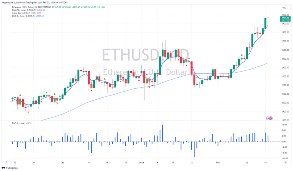 我们看到一些资金回流到一系列加密货币中,尤其是GLMRUSD正在飙升,显示出强劲的上行动能 – 我乐于在这里做多,止损点设在0.4300以下。LINKUSD也引起了我的关注,我倾向于在突破20.40后持有多头。以太坊受到了很好的关注,并且引起了加密货币领域动量交易者的极大关注,因为它也在飙升,即将测试3000美元 – 这是一个热门市场,因此设置限价单以捕捉价格回落至2950/45可能是一个好策略。在这里,做多ETH/做空BTC是一个低贝塔的策略,适合那些想要降低方向性敞口并专注于低贝塔策略的人。