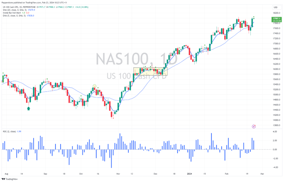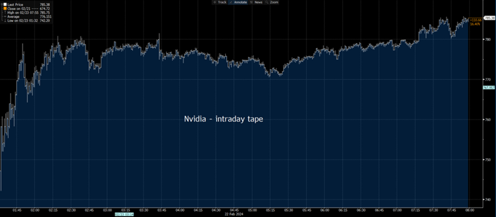 英伟达效应席卷全球股市,并为那些看起来可能面临3-5%下跌的市场注入了新的活力。 EU Stoxx、GER40、JPN225以及美国大盘股,包括US30、US500和NAS100指数,都创下了新高。