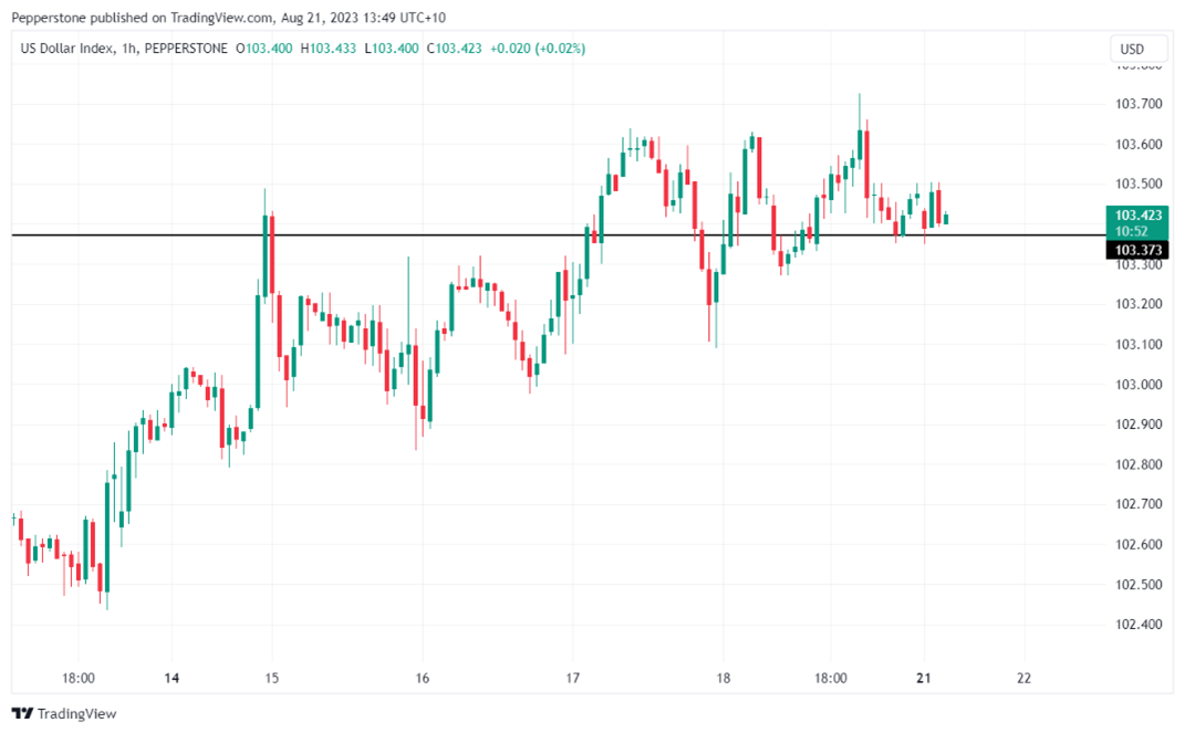 图3. 美元指数突破103.37,正在测试新高,数据来源:TradingView